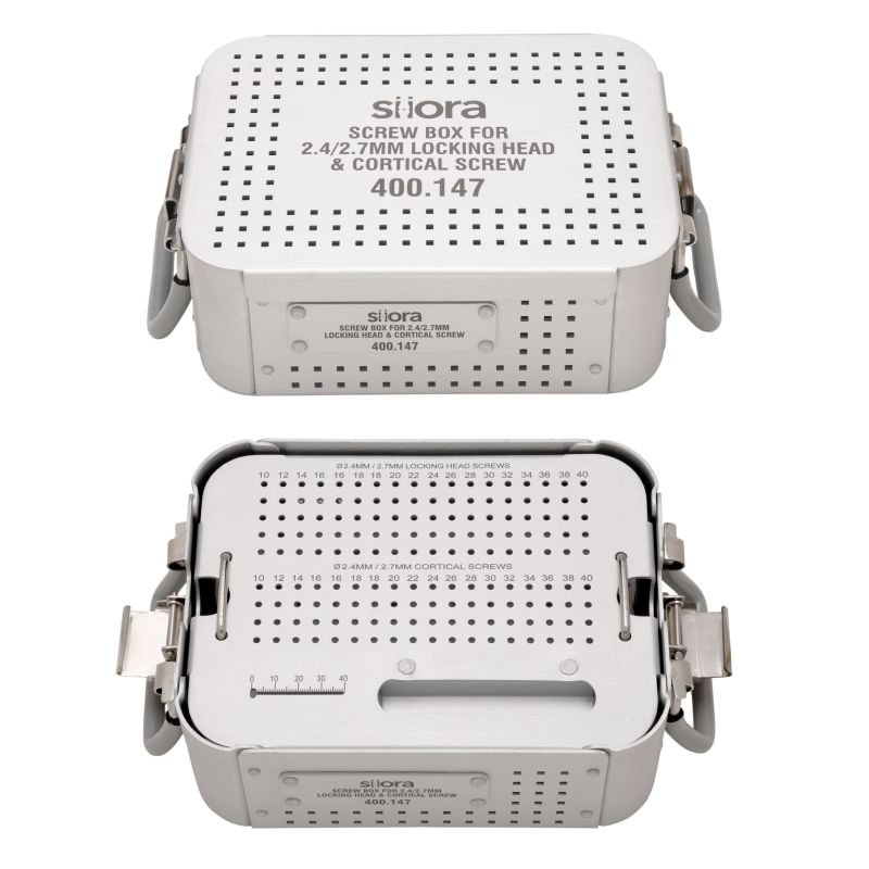 | 400.147 | Aluminium Screw Box for 2.4/2.7mm Locking Head & Cortical Screw With Screw Holding Forceps |